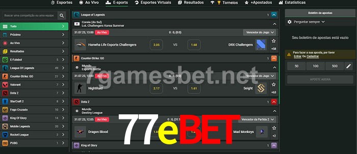 A aposta 77ebet oferece aos jogadores a experiência mais conveniente de apostas em eSports!